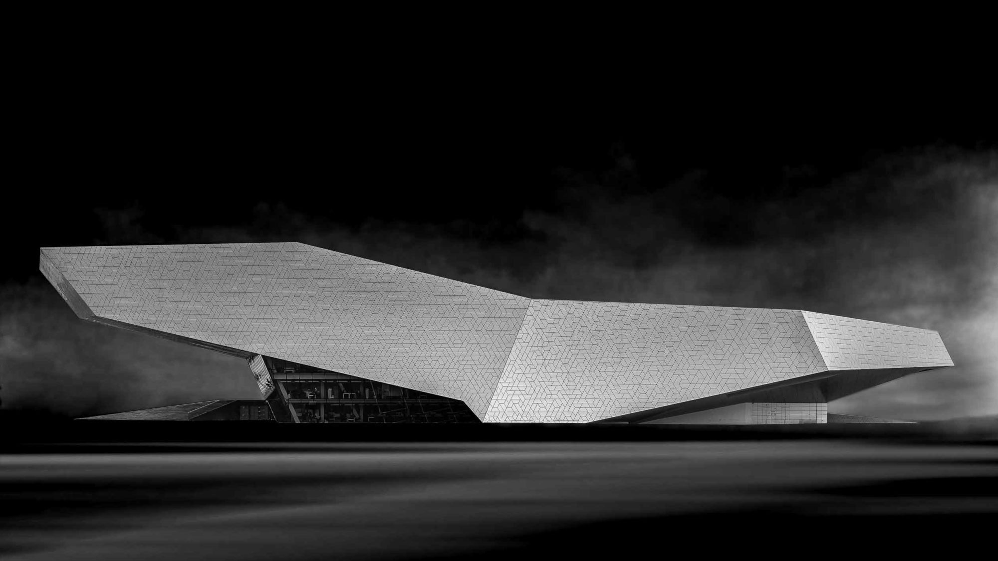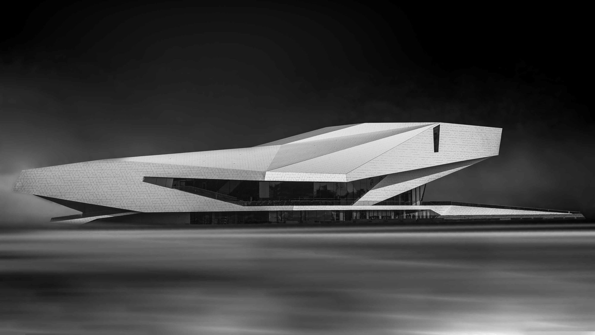 Het EYE filmmuseum is ontworpen door de architecten Delugan & Meissl. Het gebouw staat in een bocht aan het IJ, in een druk bebouwde moderne omgeving. Om de sculptuur van het gebouw te benadrukken is, is het object geïsoleerd van die context.